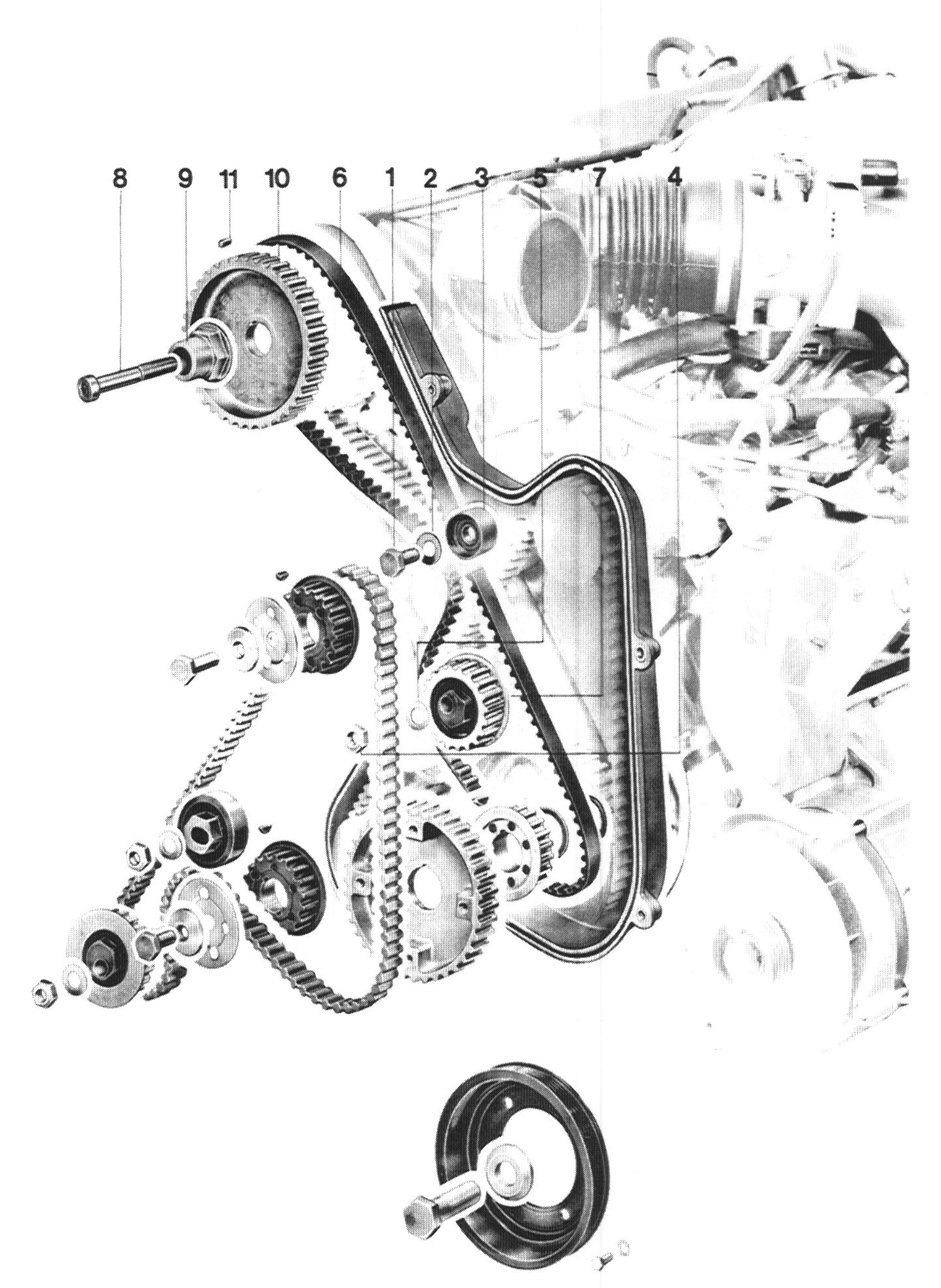 10 Camshaft sprocket 1 Note position when installing drive belt