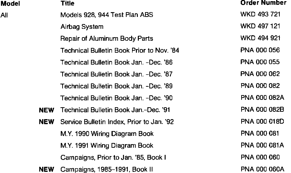 Shown is a complete list of the Technical Information Booklets currently available. These booklets provide specific information on the described subject matters, and are issued prior to the material being included in a Workshop Manual. Even after the subject matter is included in the relevant Workshop Manual, many technicians prefer to utilize these booklets due to their handy size and concentration of data.