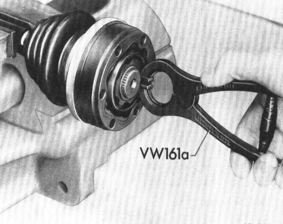 1. Press constant velocity joint on shaft, inserting the circlip in its groove at the same time. If necessary adjust circlip with special pliers.