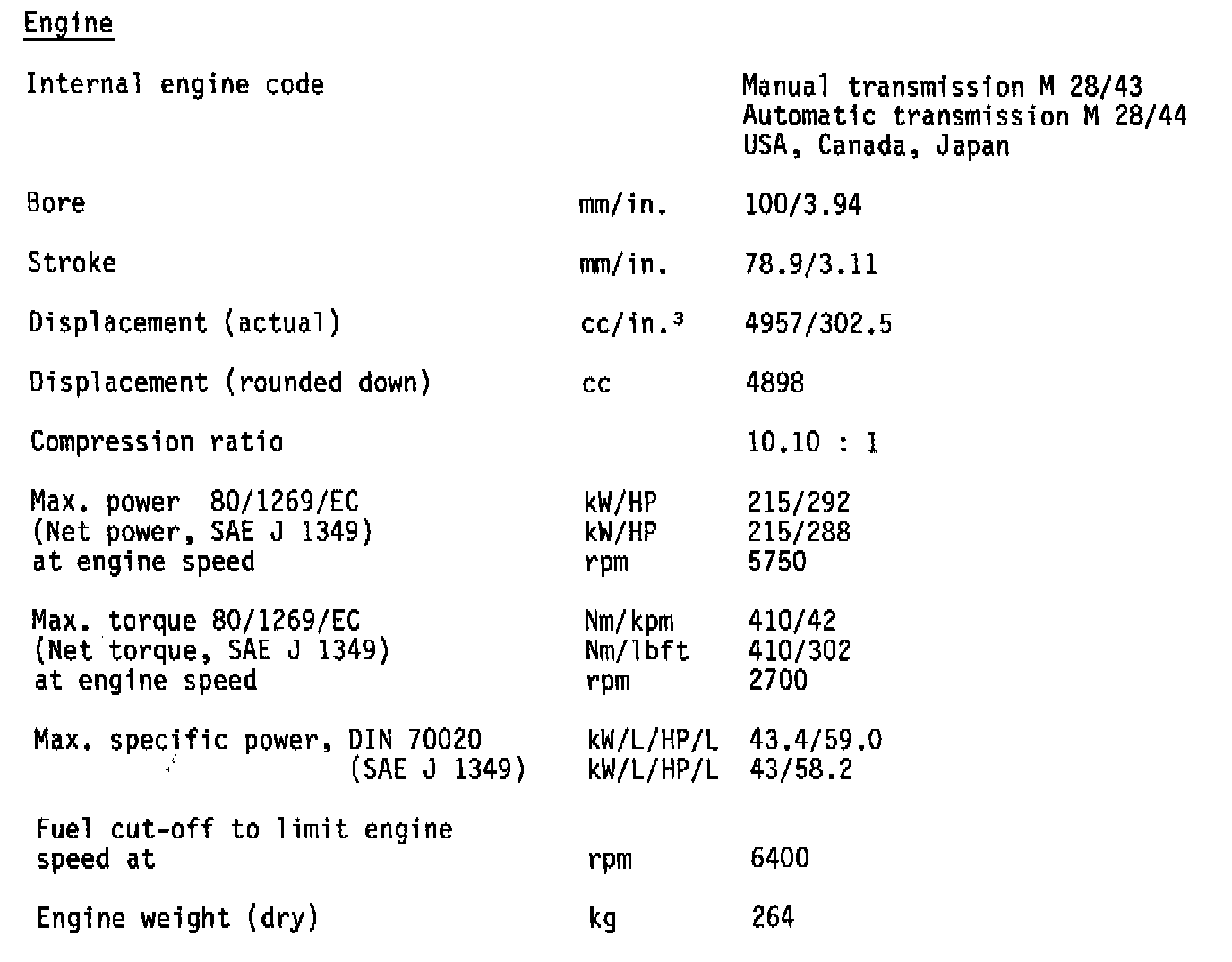 928 S V8-4957cc 5.0L