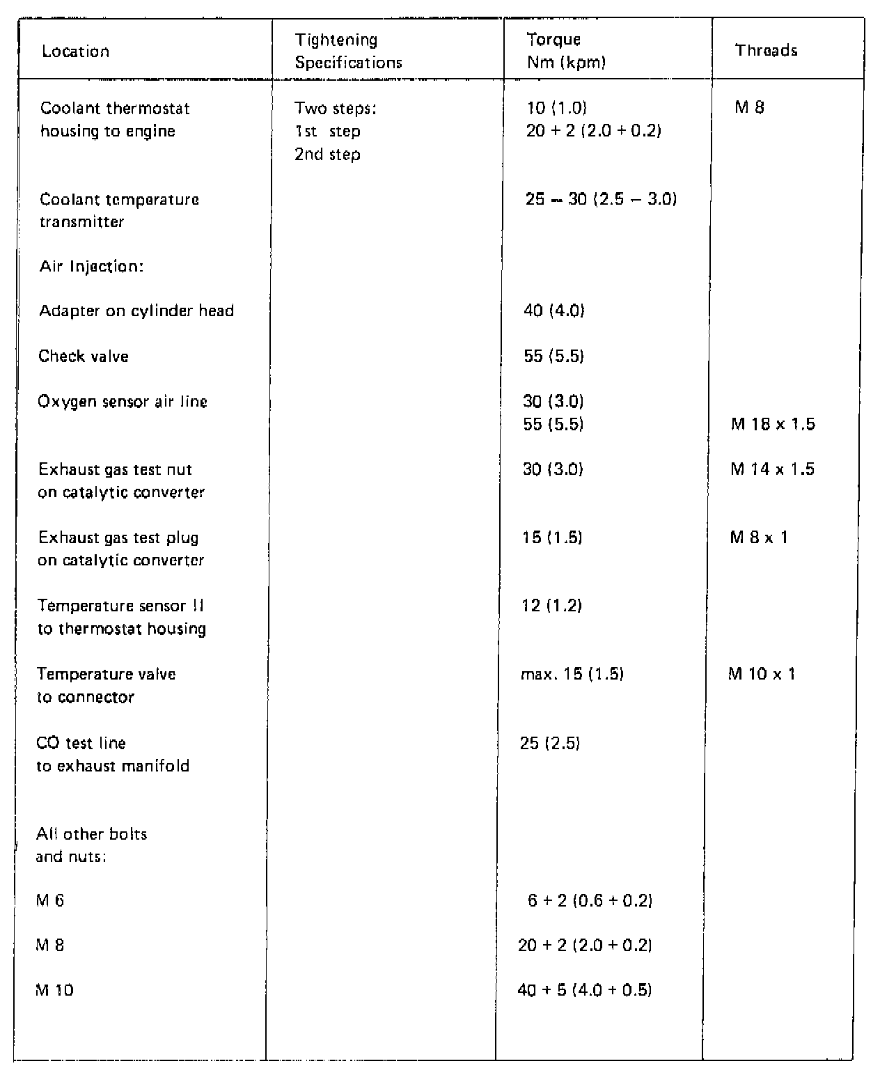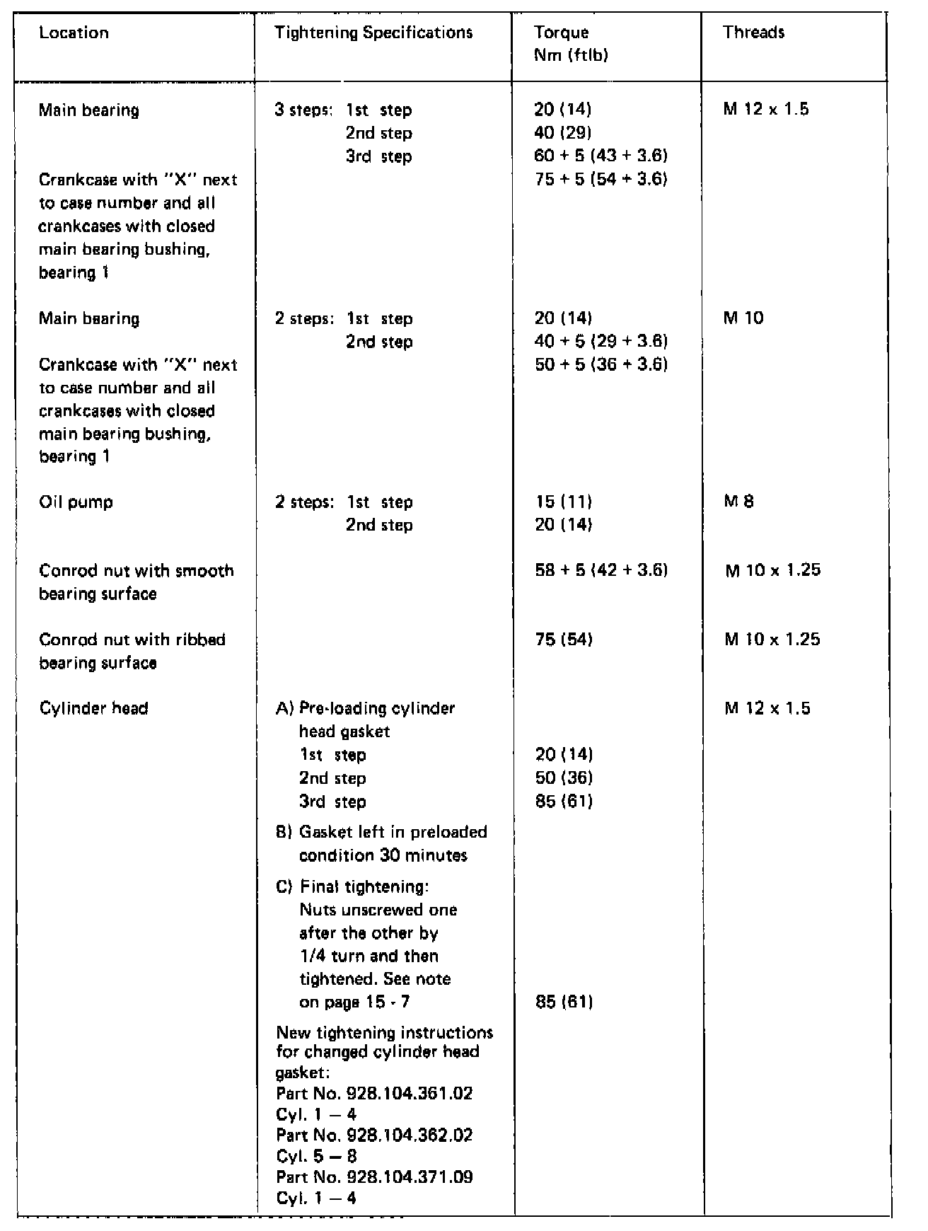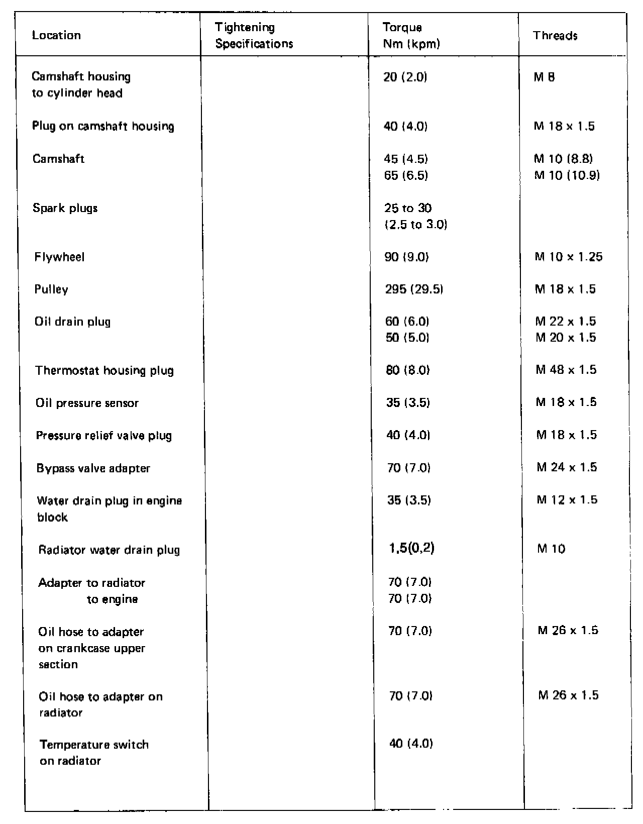 TIGHTENING SPECIFICATIONS