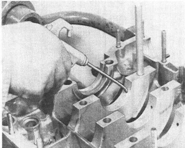Inject methylated spirits into oil feed bore for main bearing seat.