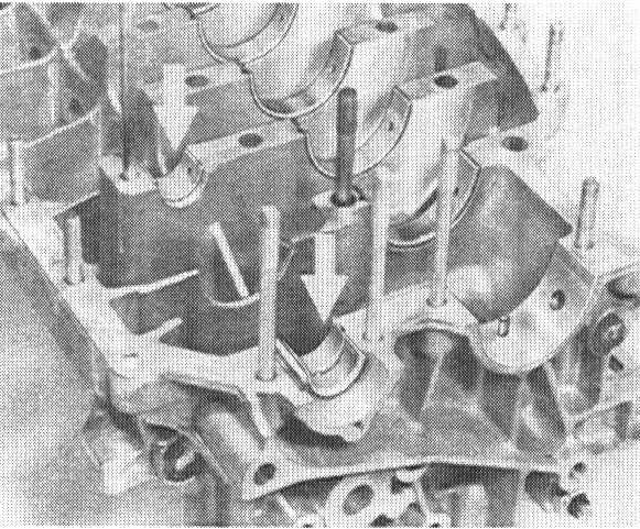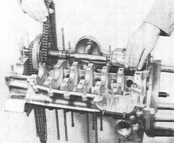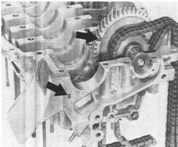 3. Install intermediate shaft in crankcase together with the connecting shaft and oil pump, but without timing chains. Mount oil pump and check, whether intermediate shaft, connecting shaft and oil pump run without runout. Keep changing spline connection of parts until smooth running is reached.