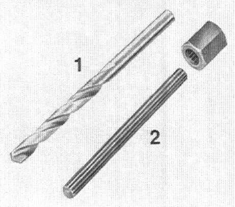 2. Drill an approx. 15 mm deep hole in stud with a 1/4" (6.35 mm) dia. special drill or hard metal drill of same size in a table or stand drilling machine.