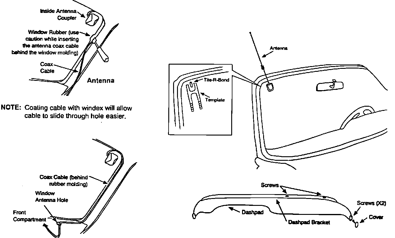 5. Attach antenna and coupler to front windshield (refer to instructions provided with antenna).