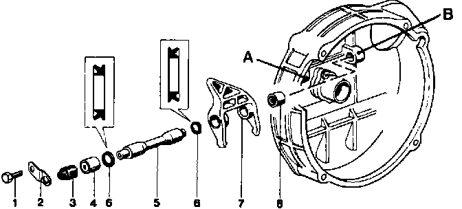 6. Guide the closed bearing (8 in Figure 4) on the release lever shaft and tap bearing into support