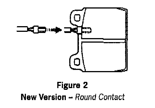 After inserting the disc brake pads, apply a thin coat of Silastic 732 RTV sealant in the area of the seat (Figure 3, arrow) of the round contact (Figure 3, Item 2) on the lead for the wear indicator.