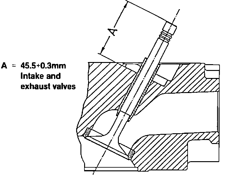 Repair Information: Distance A (Figure 1), valve stem end to cylinder head contact surface for the valve spring retainer, should not exceed 45.5 +/- 0.3 mm after machining valve seats.