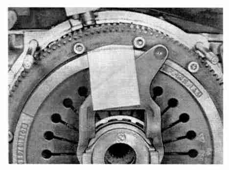 - Remove clutch retaining bolts by slackening bolts uniformly. Remove clutch from flywheel. If the flywheel must be removed, use Special Tool P 238 a to counter.