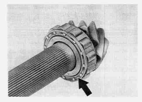 NOTE: Install bearing with collar of roller cage facing gear set.