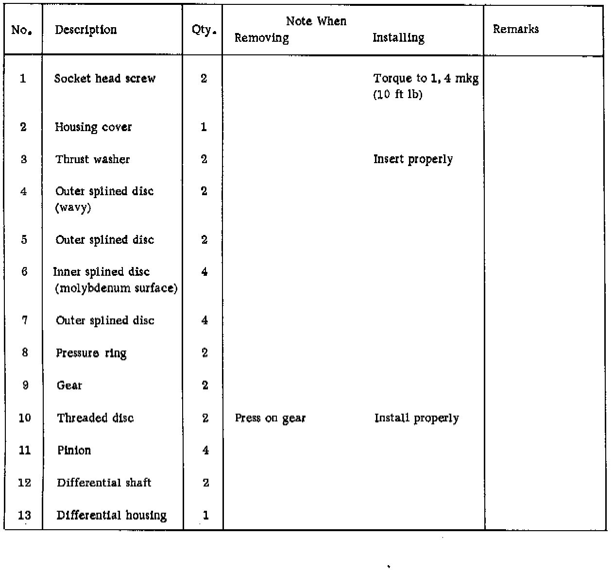d) Discs - Check inner and outer splined discs for wear. The guide tabs of the outer splined tabs of the outer splined discs and the inner splined disc serration should not be worn.