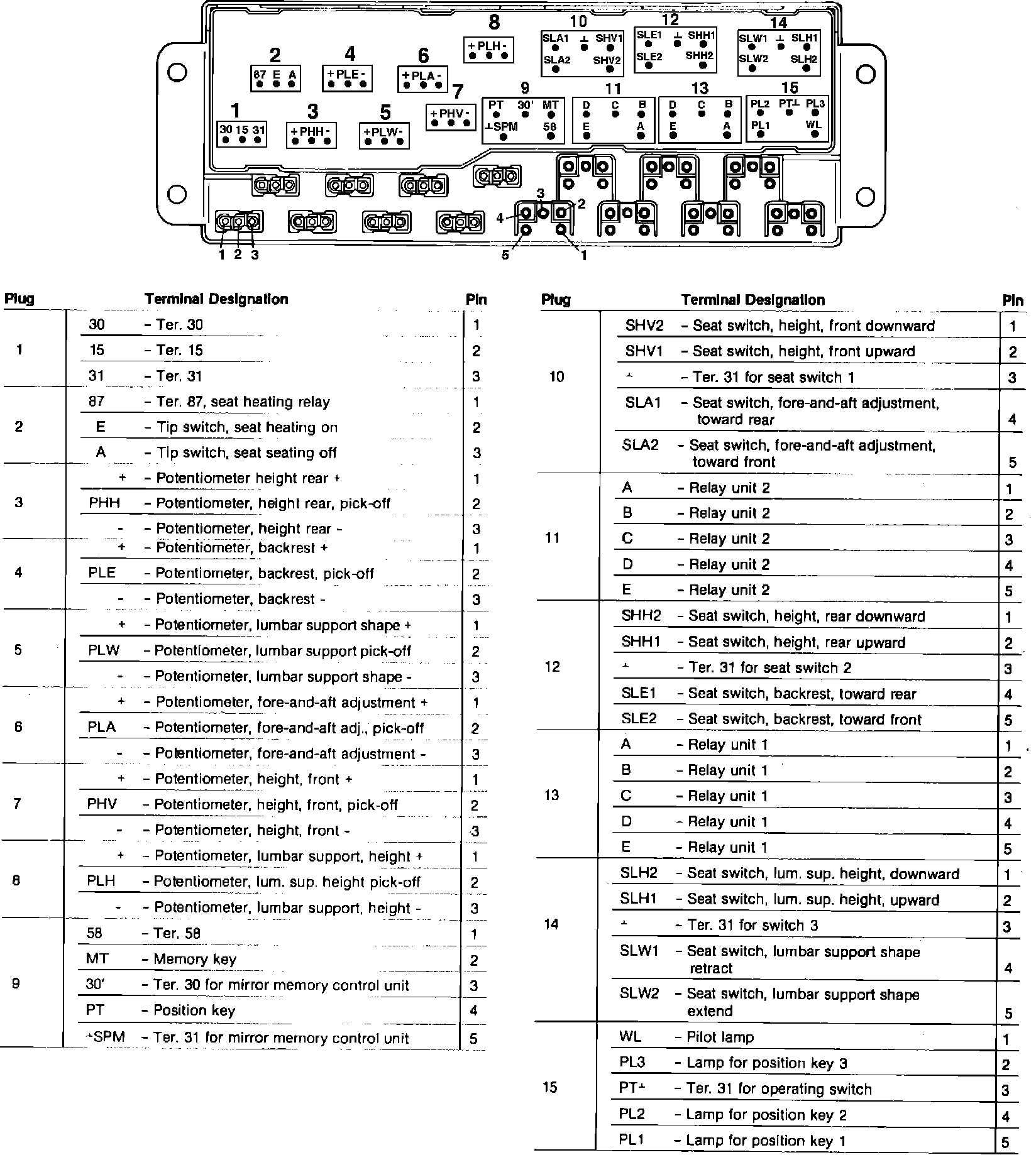 Terminal Designation Chart For Seat Adjustment
