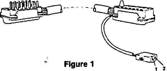 3. Connect adaptor cable (Special Tool 9269) (Fig. 1) between disconnected wiring harness plugs on car and seat. Terminal 30 (battery plus) and Terminal 31 (ground) can be picked off the 2 pole plug for some test steps. Use a voltmeter to identify + and - terminals.
