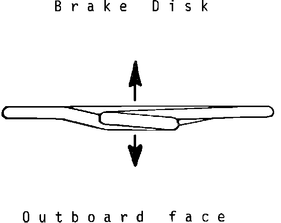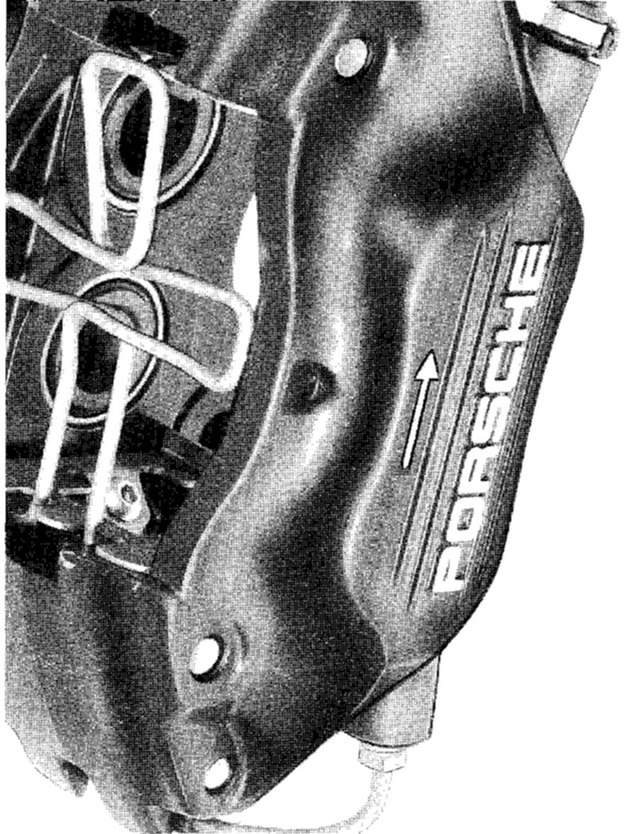 Mount caliper to support, noting direction of arrow on caliper frame (direction of rotor rotation) this must point toward front of car.