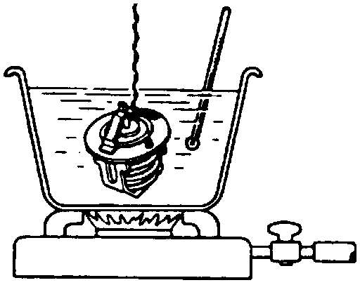 - If the thermostat is not visibly damaged, place it in a pot of water and heat the water until it reaches the opening point. If the thermostat does not open at the required temperature it should be replaced.