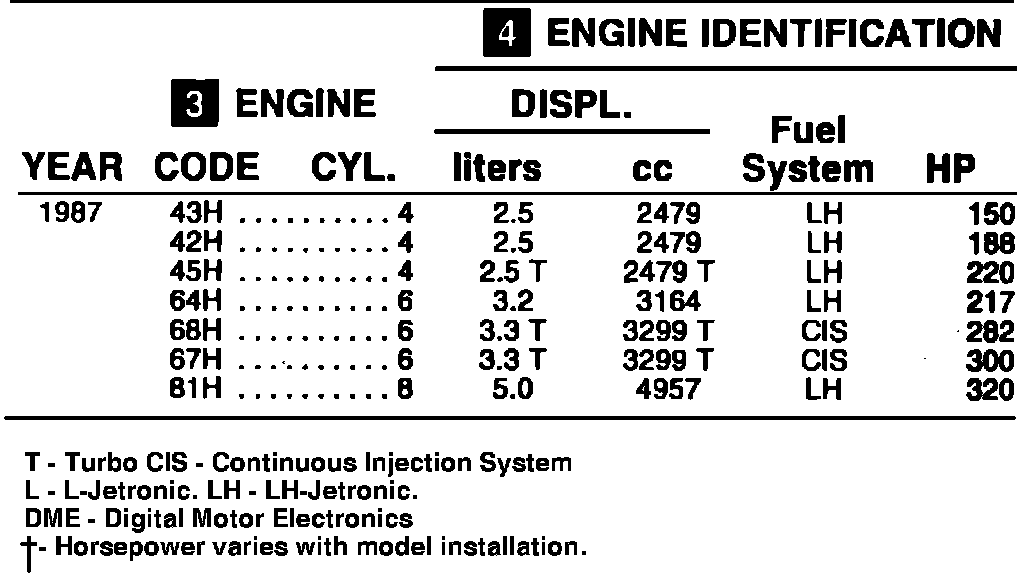 To identify an engine by the manufacturer's code, follow the four steps designated by the numbered blocks.