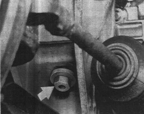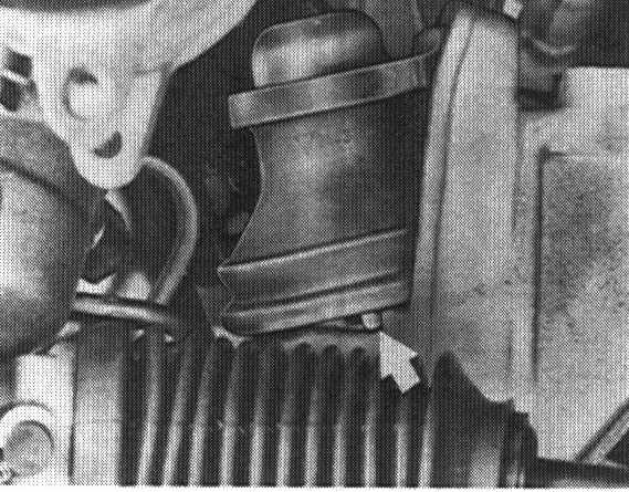 11. Remove hydraulic engine mount toward front. If necessary because of limited space first turn mount 180°.