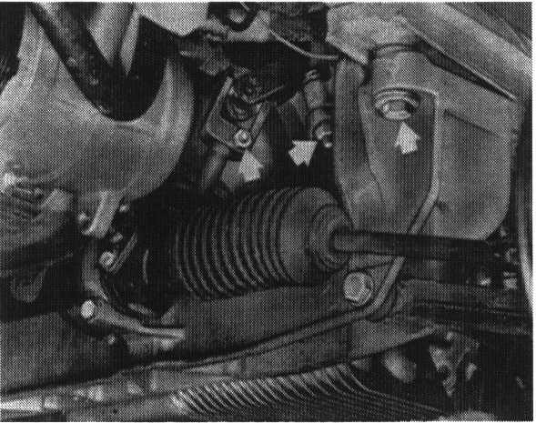 - Do not unscrew control arm mounting bolts, since otherwise front wheel alignment would have to be checked and adjusted.