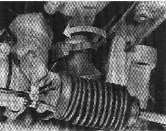 Pull off plug on air flow sensor and vent hose on air cleaner to have access to the transport bracket.