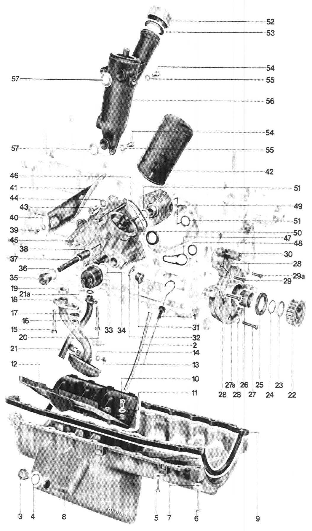 49 Oil/water cooler 1 Pre- assemble in housing and mount together with crank case upper section