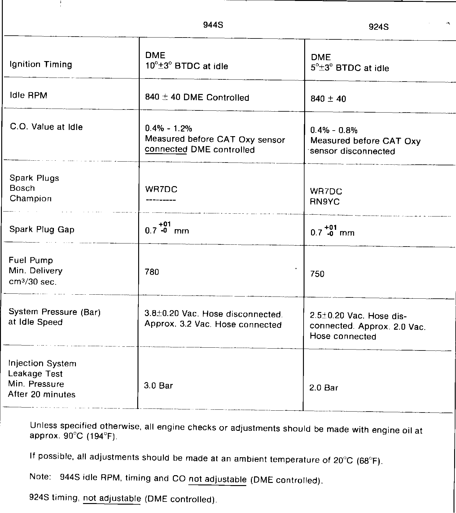 TUNE-UP SPECIFICATIONS