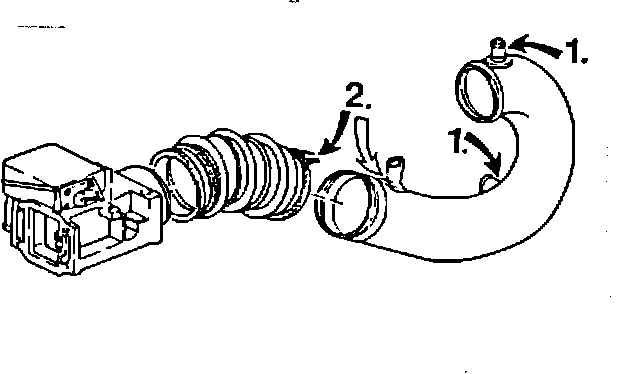When repairing high idle or low CO% conditions on 944S cars, first check the intake air bellows and connecting pipe for leaks. Be certain all hose connections (arrow 1) on the connecting pipe and air bellows are not damaged, swollen or cracked.