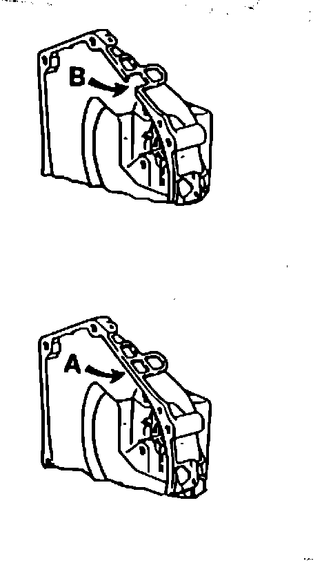 For Model '87 the opening in the clutch housing (Arrow B) for the speed and reference sensors is slotted. Because of this, it is possible the reference mark sensor may be inadequately shielded from magnetic interference from the starter during cranking.
