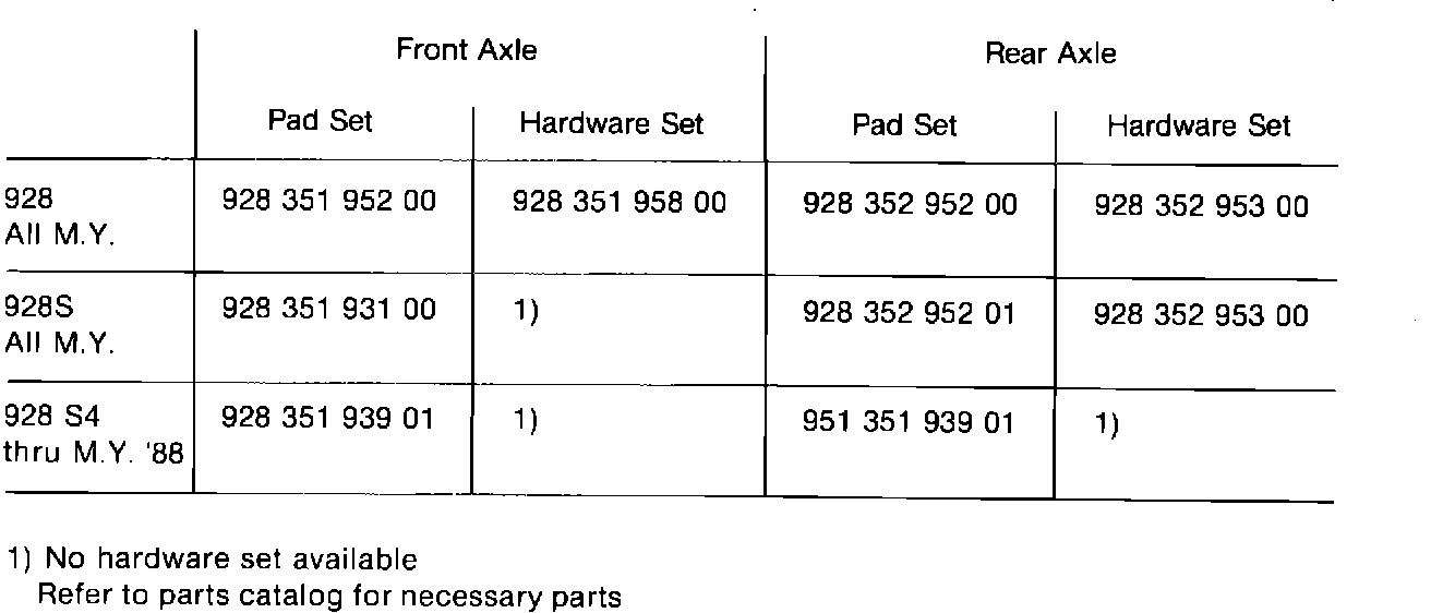 Brake pad sets and hardware sets (containing springs, retaining pins and clips) have to be ordered separately.