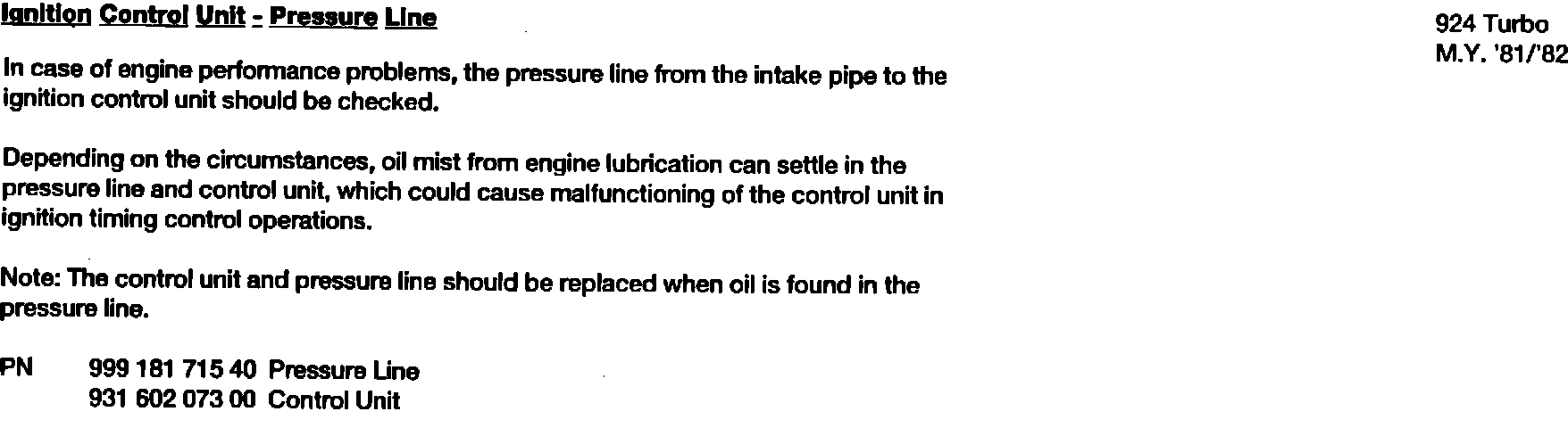924 Turbo M.Y. '81/'82 Ignition Control Unit - Pressure Line