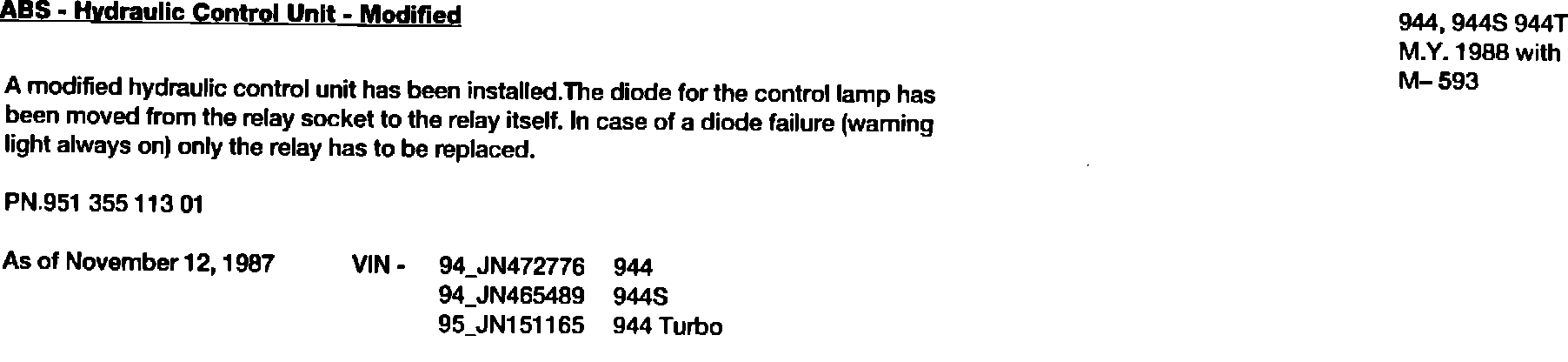 944, 944S 944T M.Y. 1988 With M-593 ABS - Modified