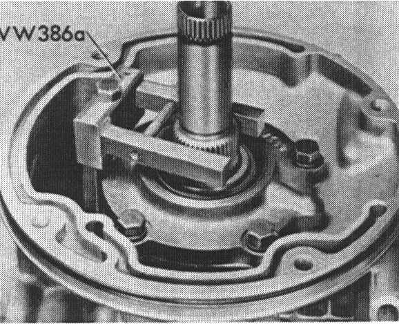 2. Mount VW 386 a on pinion cover and hold pinion tight with clamping bolt.