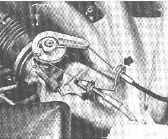 4. Loosen control cable on bracket and disconnect on accelerator pedal.