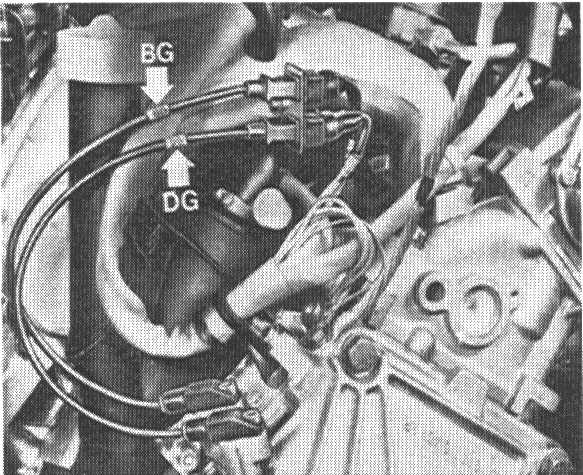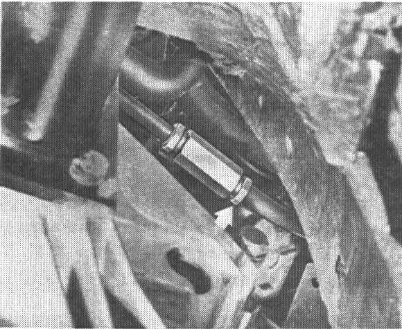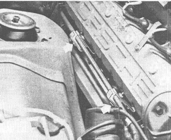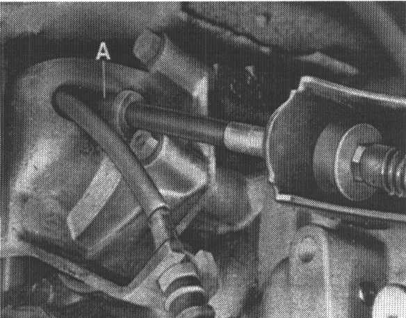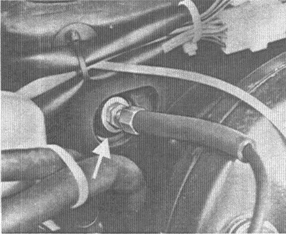 5. Press control cable out of rubber guide in firewall and pull out cable forward.
