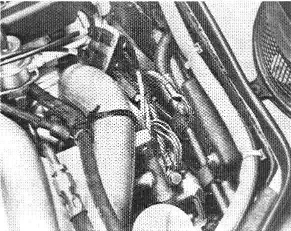 Note: Since the heater valve covers up the ground point, the coolant must be drained partially and the valve removed.