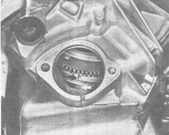 16. Mark position of flywheel/damper for reinstallation later or turn flywheel until marks in starter opening are visible.