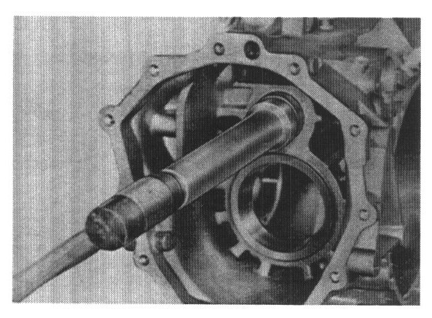 Note: It is essential to heat the transmission case thoroughly prior to installation of the outer race, since the tapered roller bearing outer race for the drive pinion must be installed in the case with a very tight press-fit. In order to be able to install the outer race without problems, case temperature must be at least 150°C (300°F). Temperatures up to 180°C (350°F) will not damage the case. Heat from hot water stream or washing machine will not be sufficient.