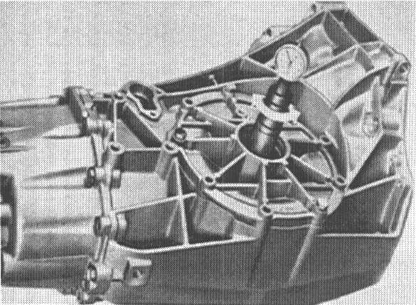 11. Turn the universal gauge until the dial gauge probe makes contact with the gauge plate on the pinion head and the dial indicates max.deflection (reversing point). The measured value is dimension "e" (black number scale).