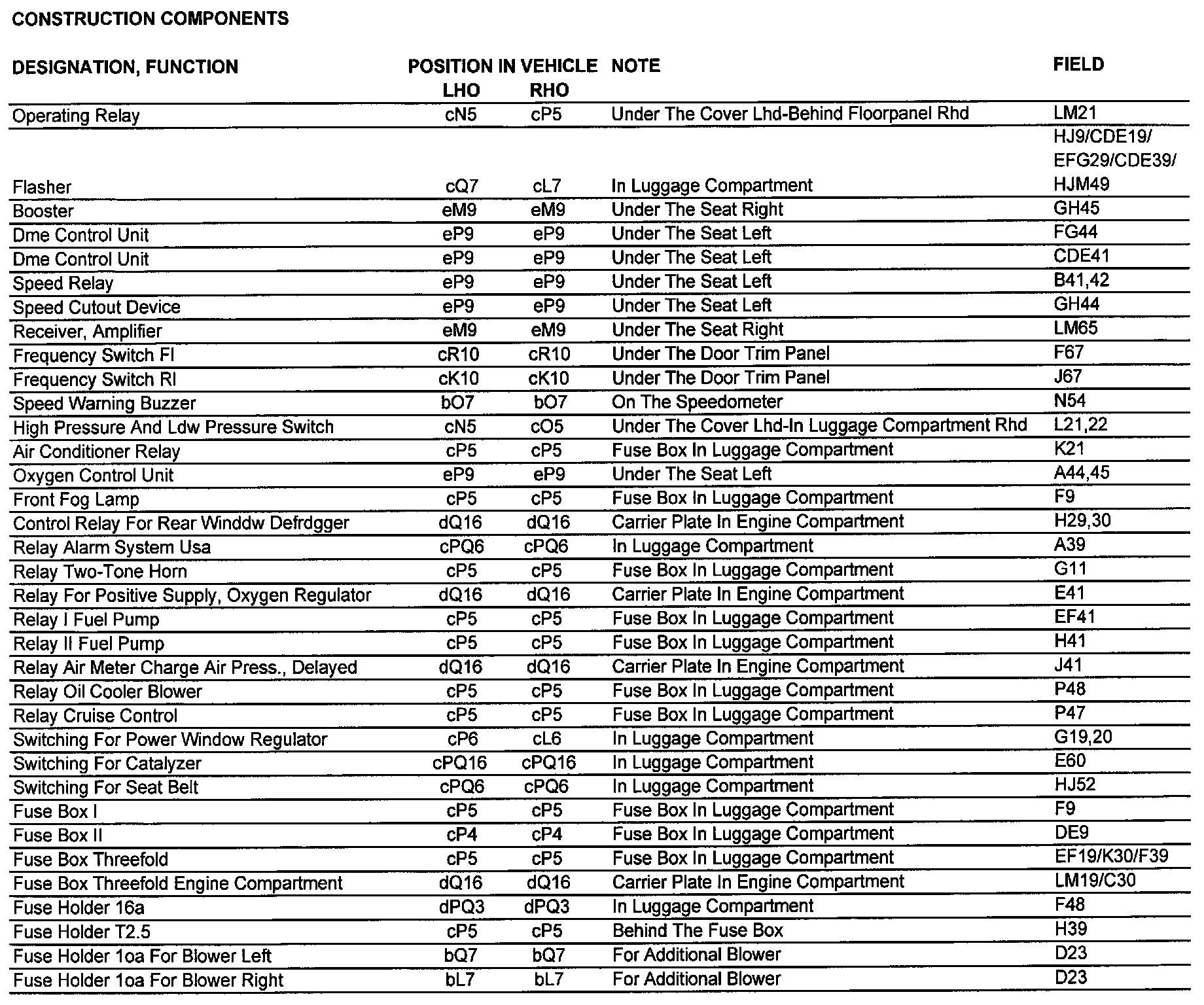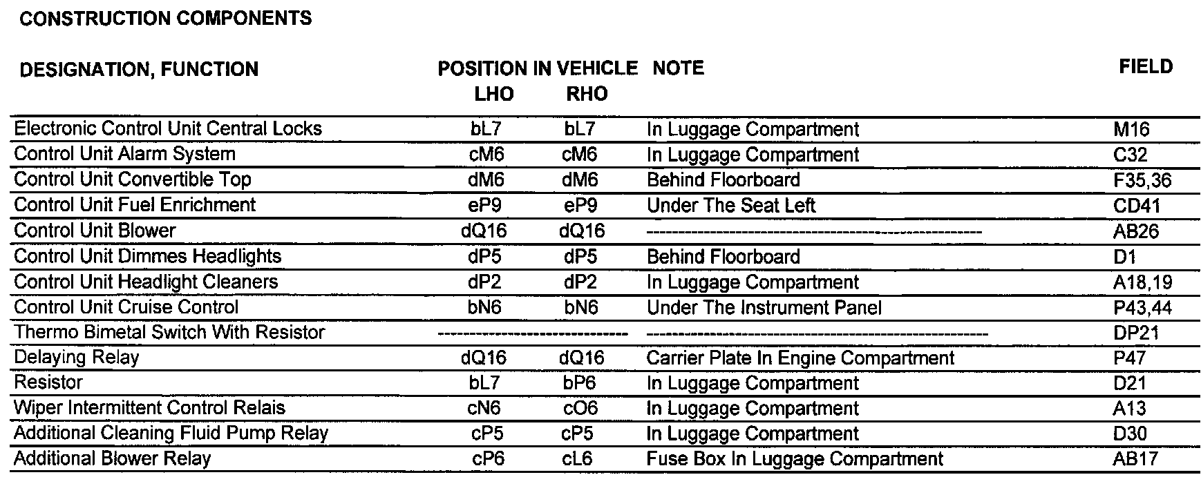 Position In Vehicle/Location Grid:
