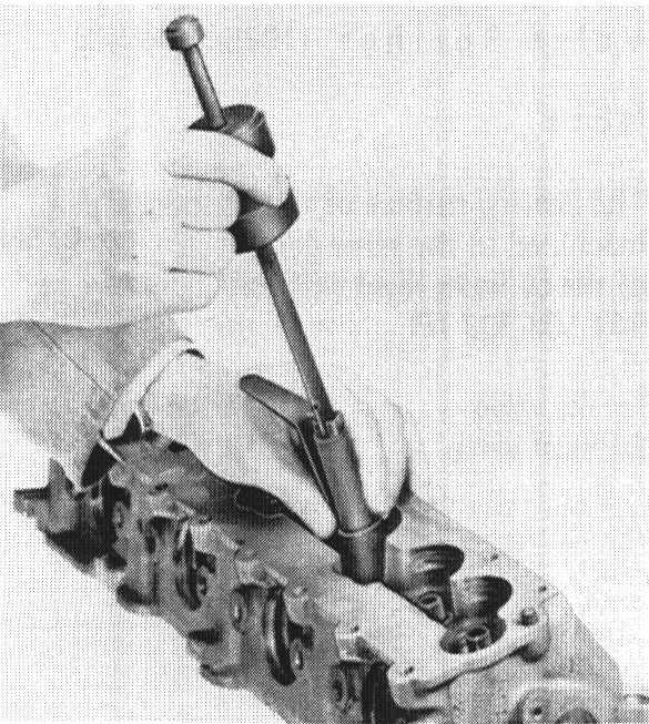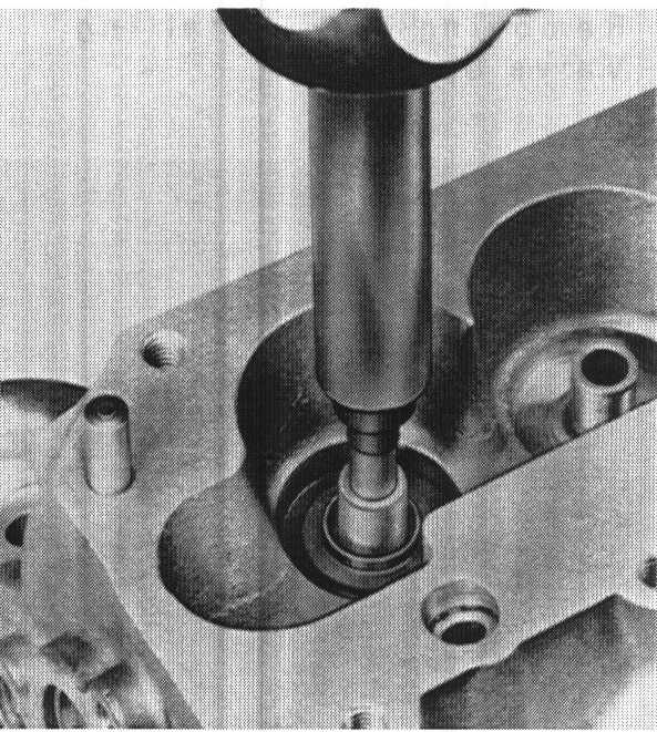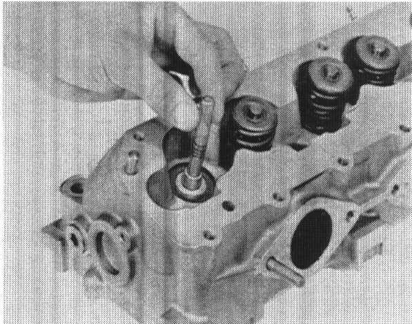 2. Lubricate valve stem seal with oil and slide on to the valve guide carefully using the pressure pad.