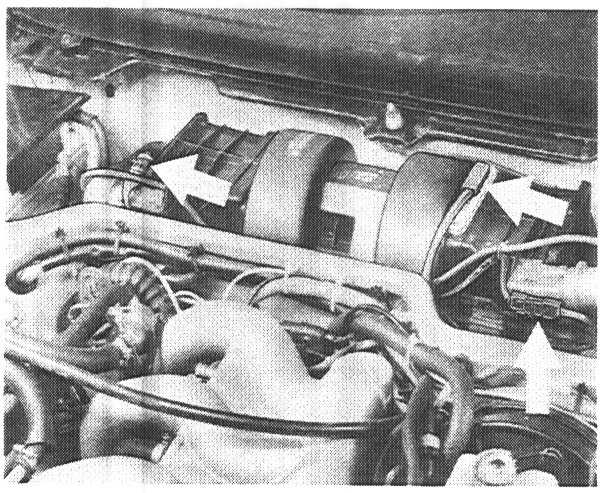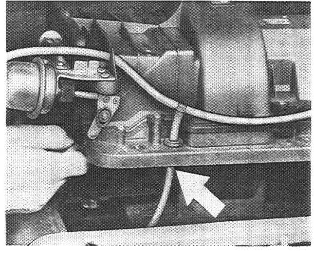 4. Lift fresh air blower slightly. Pull off inner vacuum line.