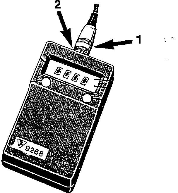 Do not overtighten the coupling nut (arrow 1) when screwing the connection lead onto tester 9268. Contact is assured even when the coupling nut is not fully tightened. Overtightening will cause the connection socket to turn in the tester housing and may result in broken wires. If loose, apply several drops of quick drying cement between the tester housing and socket (arrow 2) to prevent the socket from turning.
