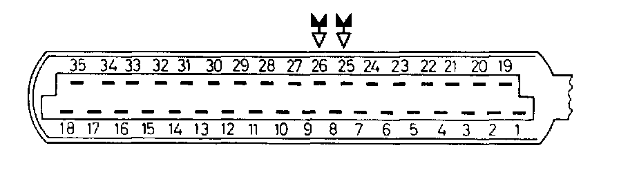 Adjust oscilloscope as in test point 3. Connect oscilloscope tester leads on terminals 25 and 26 of control unit plug with help of test leads.
