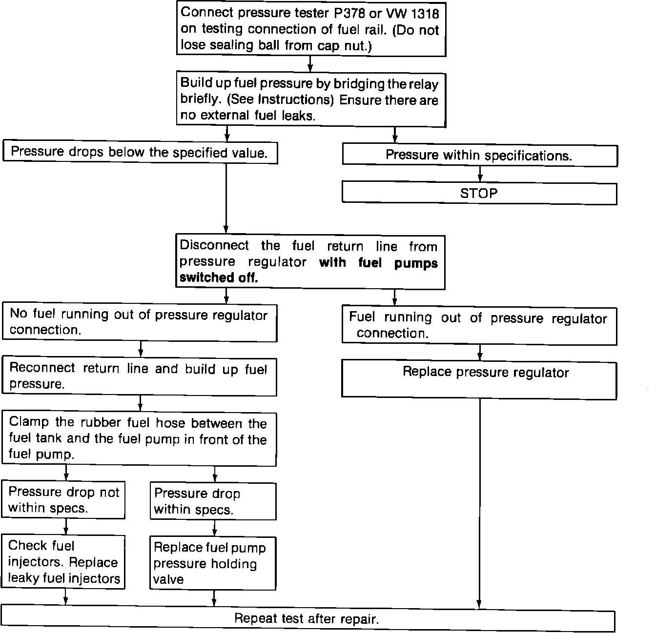Consequently the return hose on the pressure regulator cannot be clamped to perform a fuel system pressure holding test. The revised test procedure is below: