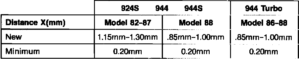 The clutch disc should only be replaced when the lining thickness (Distance X) falls below 0.20 mm.