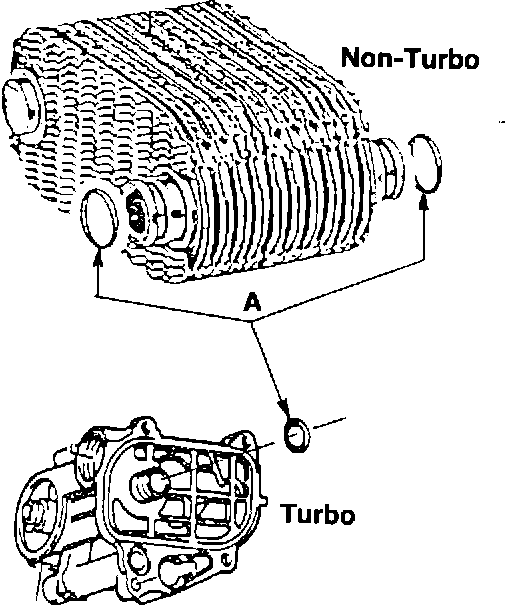 The sealing O-rings (A, figure 1) located on the oil cooler of normally aspirated cars and on the connecting pipe of the oil thermostat housing of Turbo cars, have been changed. The new version O-ring is now green in color (formerly red). When repairing, use ONLY the new version green O-rings. Part Number 999 707 043 40.