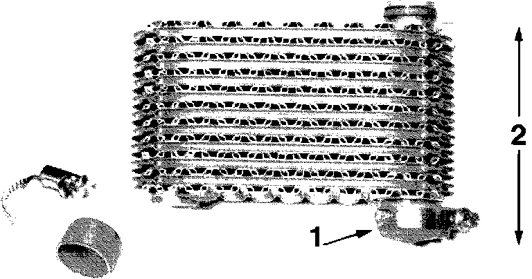 Install the dust cap and hose clamp on one side of the cooler and tighten clamp (arrow 1, figure 2).