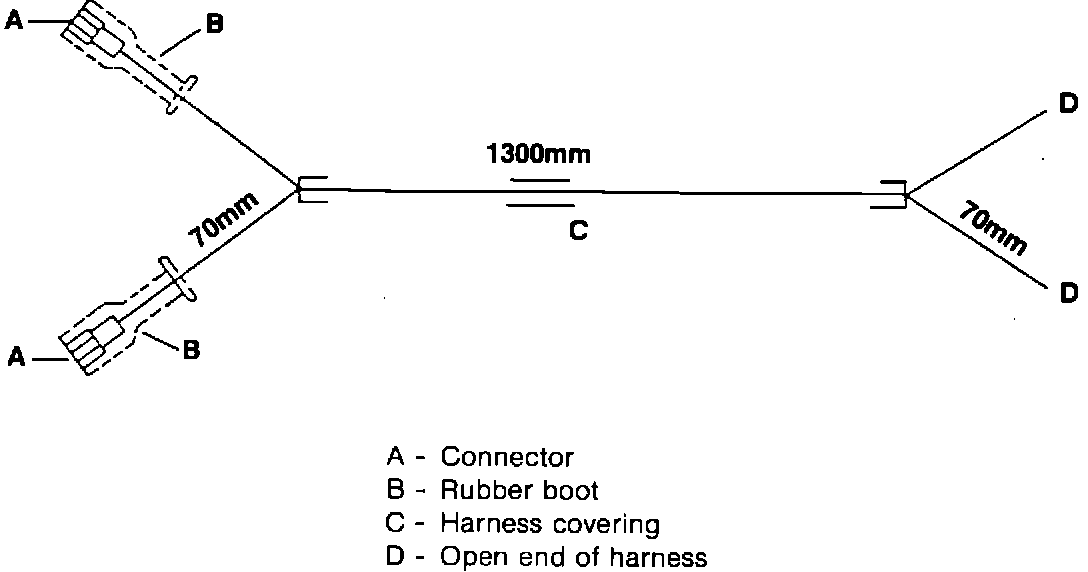 Note: When assembling the wire harness, leave approximately 70 mm of free wire at both ends of harness. In addition, attach 2 connector boots and electrical connectors on one end of the harness only. The remaining connectors will be attached later. (see Fig. 2)