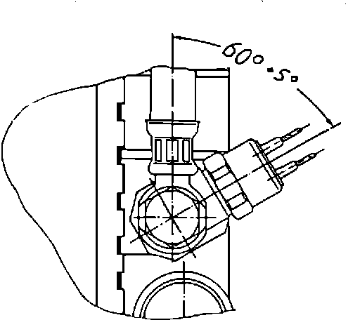 4. Install the temperature switch into the switch adapter and torque to 30 N-m (22 ft.lbs.). Pre-assemble the switch adapter along with the new hollow bolt and sealing rings onto ATF line and install onto radiator. Position the temperature switch as shown in Fig. 4. Tighten the entire assembly to 30 N-m (22 ft.lbs.). Be sure to counterhold the radiator fitting adapter.
