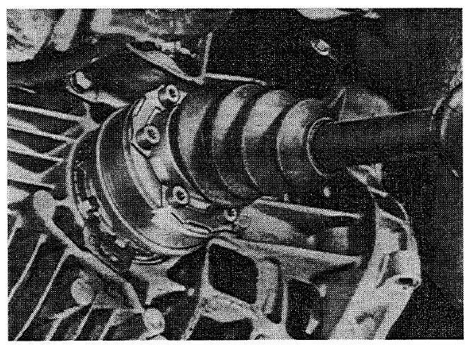 5. Open inspection hole in rear bell housing and unscrew mounting bolts for torque converter (hold pulley if necessary).