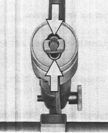 6. When the conical valve keepers are locked in, the tensioning arms of the assembly head point outwards.